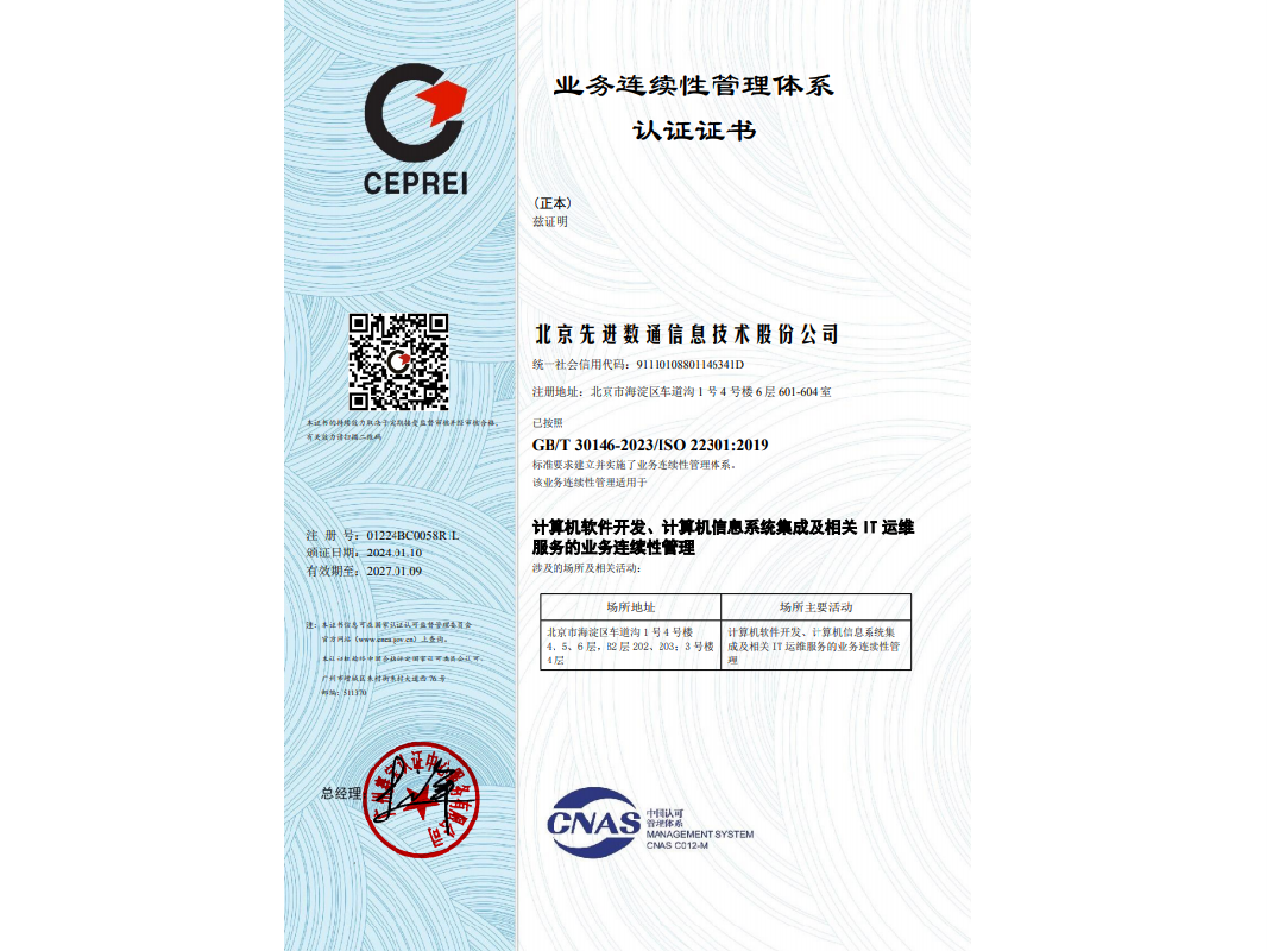 东升国际 东升先后取得CMMIL5、软件能力成熟度五级(SPCA 5)、信息系统建设和服务能力评估体系(CS)5级、ITSS成熟度一级、信息系统安全集成服务资质二级、信息系统安全运维服务资质二级、国产化信息系统集成和服务能力评估四级(LS4)、北京市企业技术中心等资质认证,并取得ISO9001、ISO20000、ISO27001、ISO14001、ISO45001、ISO22301、ISO37001、ISO28001、GBT29490、SA8000等标准体系认证,具备行业领先的技术开发、工程实施及服务保障能力。